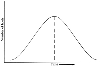 Parasites of the digestive tract probably became such after having been swallowed, either accidentally or intentionally, by the host. If they were preadapted to withstand the environment or were capable of subsequent adaptation to it, they might have become prgressively more dependent on the new environment or might even have migrated to other more hospitable areas, such as the lungs or liver. It is evident that parasites requiring two or more hosts developed their multi-host life cycles sequentially, for instance, blood-inhabiting flagellates first parasitized the digestive tract of insects and, when introduced to vertebrate blood while the insect was feeding, adapted to that environment secondarily. So, present intermediate hosts once may well have been definitive hosts. Recent studies suggest that the advancement to parasitism is best represented by a bell-shaped curve in which the increasing number of intermediate hosts signifies higher adaptability only up to a point. Thereafter, elimination of certain hosts is considered a more successful state because simplification of the life-cycle may enhance the parasite's chance of reaching the definitive host.