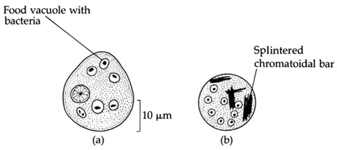 (a) Trophozoite (b) Mature cyst with eight nuclei and splintered chromatoidal bars