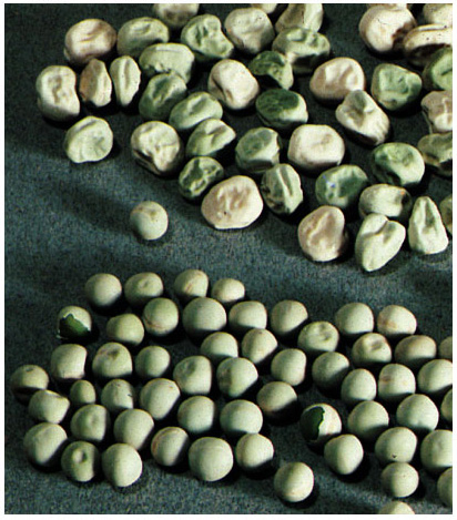 Why Wrinkled Peas Are WrinkledWrinkled peas were one variety used by Mendel in his experiments, but he had no idea how peas became wrinkled or round (smooth). All Mendel needed to know was that a “factor” controls seed shape and that it has two forms—a dominant one for round (smooth) shape and a recessive one for wrinkled shape.